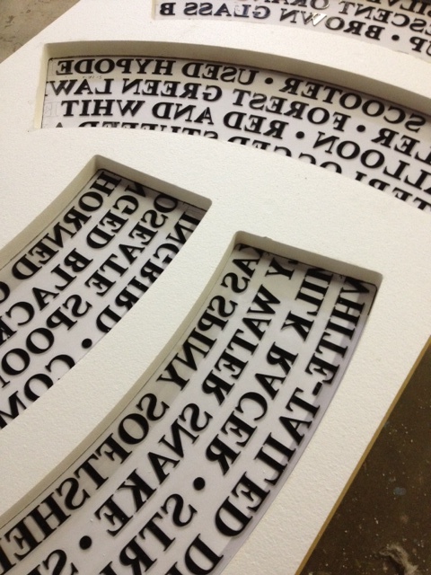 Molds being prepared for the cast text panels.
