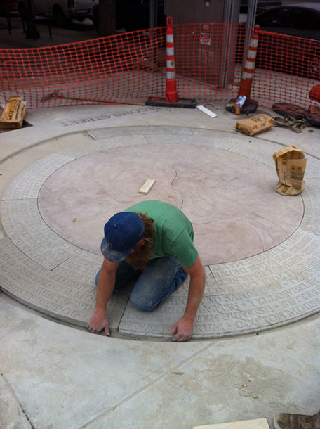 Freshly cast and installed lettering.